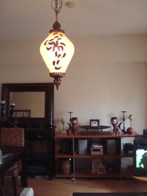 リペア待ちをして頂いている間にも、ランプをお買上げいただいて、いざ搬入。木製の大きな家具が入って、ぐっと落ち着く空間になりました。
