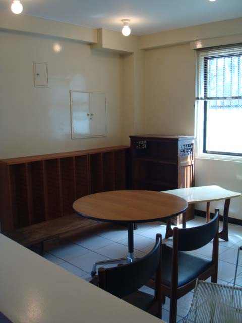 こちらの空間は、以前個人病院だった場所。1960年代に建てられた建物は、時と共に角がとれ、優しい空間に映りました。そこへ同じ時を経た家具が入り、和洋折衷だけど、まとまりのある空間が誕生しました。